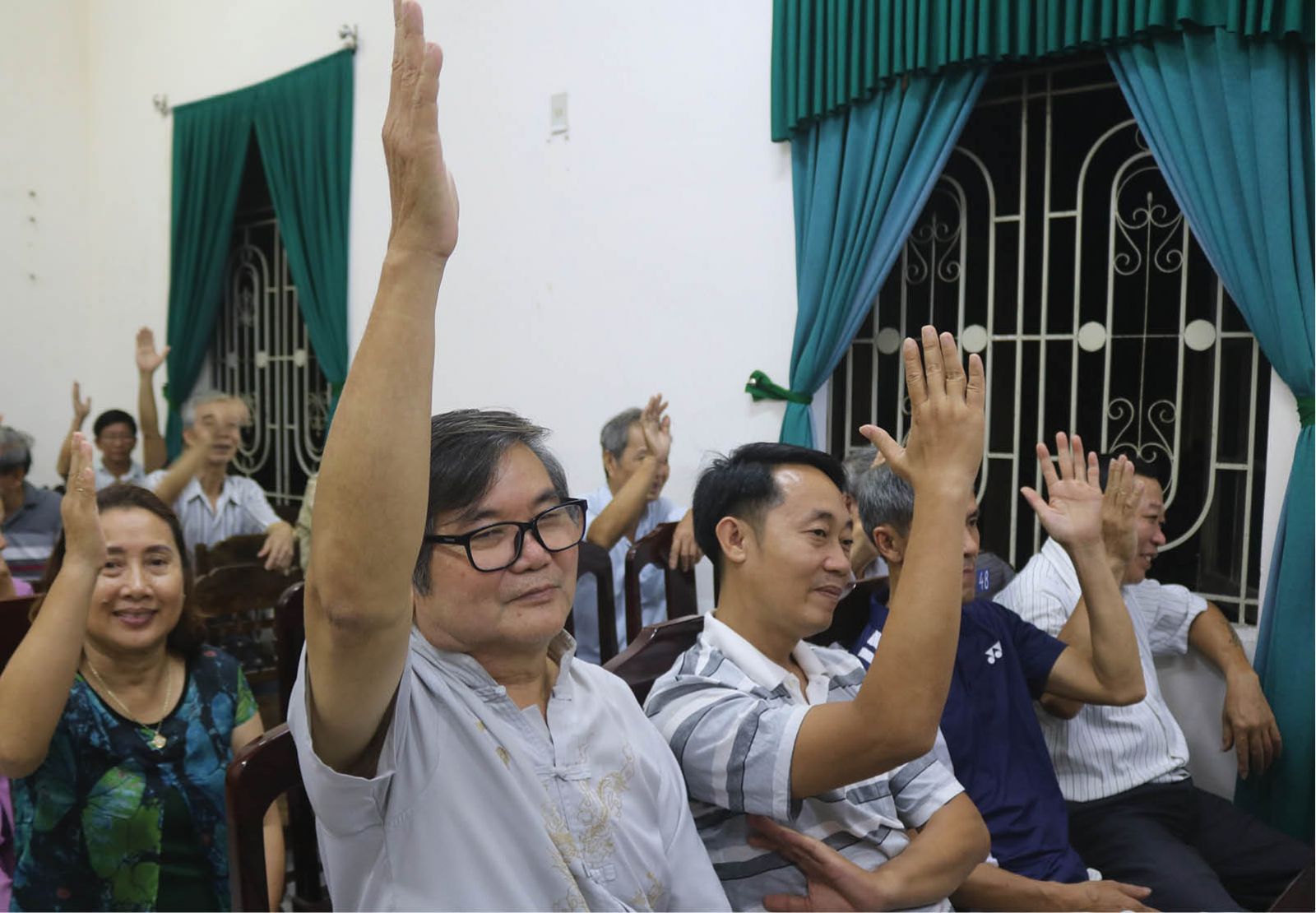 Cử tri tổ dân phố 8, phường Thuận Hòa biểu quyết lấy phiếu tín nhiệm đối với các ứng cử viên