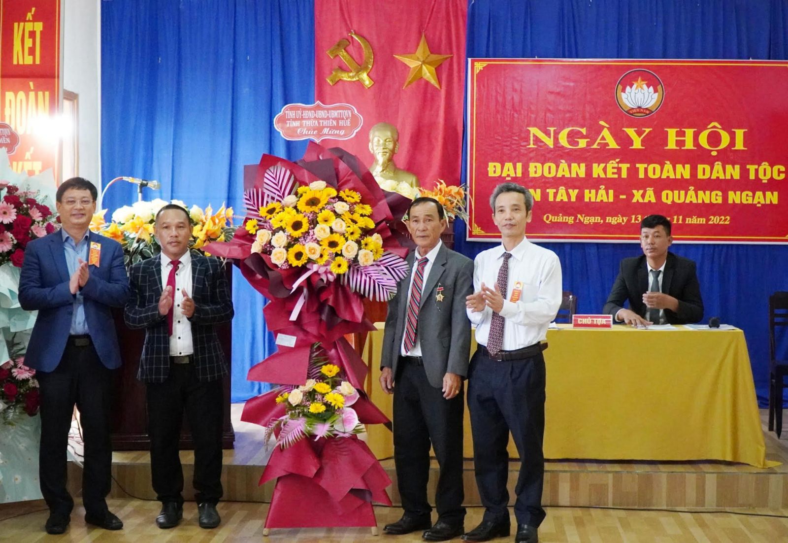 Lãnh đạo tỉnh tặng hoa chúc mừng ngày hội đoàn kết toàn dân tộc thôn Tây Hải