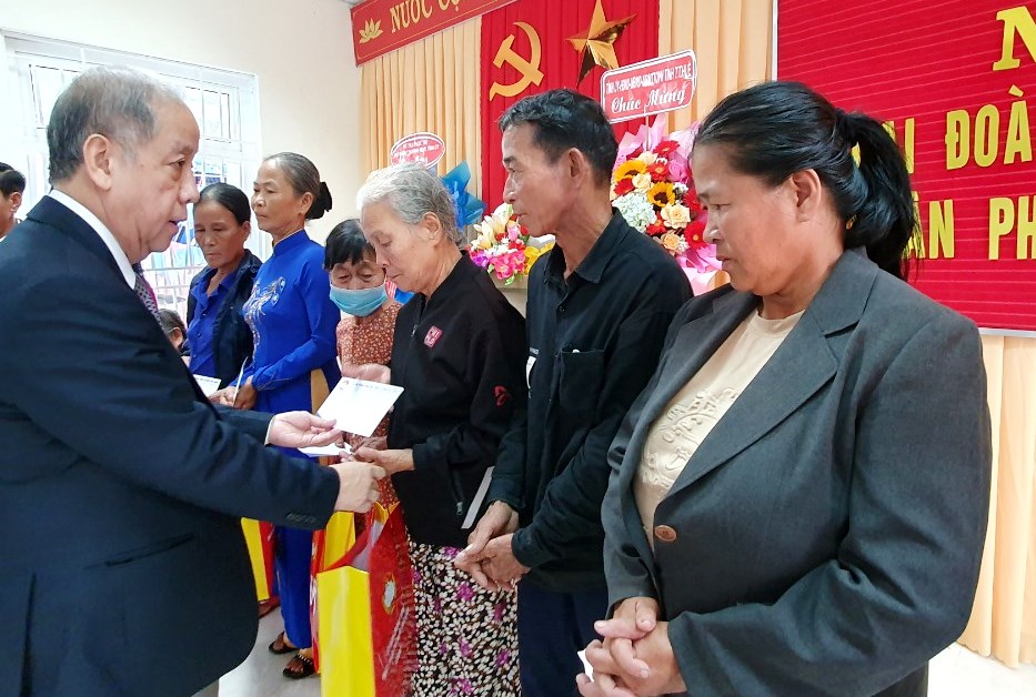 Phó Bí thư Thường trực Tỉnh ủy Phan Ngọc Thọ tặng quà các hộ nghèo tổ dân phố 2