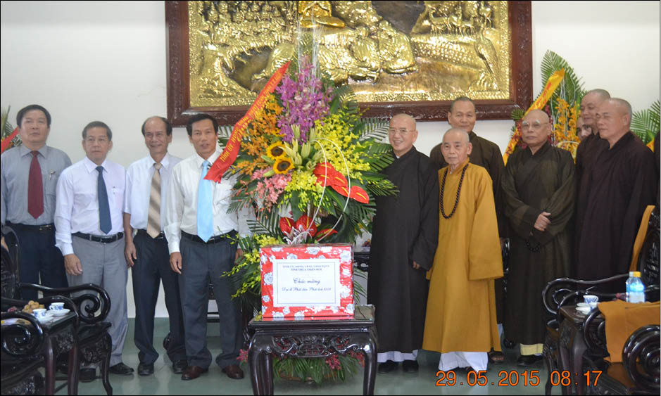Tại buổi đi thăm, Bí thư Tỉnh ủy Nguyễn Ngọc Thiện thay mặt đoàn gửi đến quý Hòa thượng, Thượng tọa và tăng ni, Phật tử lời chúc mừng Phật đản hoan hỷ, an lạc, thành tựu trên bước đường phụng sự đạo pháp và dân tộc, cùng nhau đoàn kết xây dựng đất nước, quê hương ngày càng giàu mạnh. Thay mặt Ban Trị sự Giáo hội Phật giáo tỉnh, Hòa thượng Thích Khế Chơn, Ủy viên Thường trực Hội đồng Trị sự Giáo hội Phật giáo Việt Nam, Phó Trưởng ban Thường trực BTS Giáo hội Phật giáo tỉnh, cám ơn sự quan tâm của lãnh đạo tỉnh đối với Giáo hội và các tăng ni, Phật tử trong thời gian qua; chúc các lãnh đạo tỉnh dồi dào sức khỏe, gặt hái được nhiều thành công trong công việc.