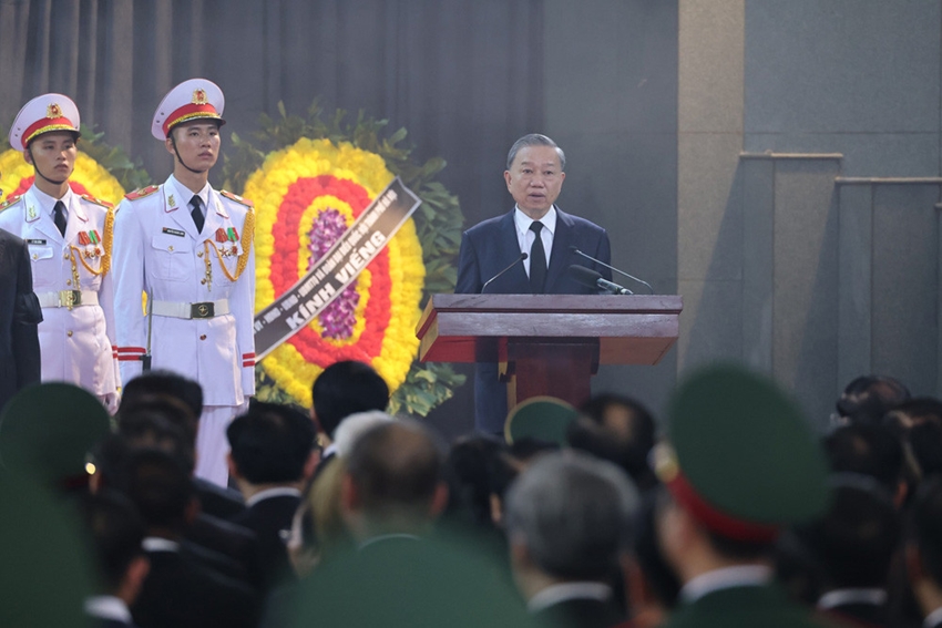 "Đồng chí mất đi là tổn thất to lớn, không thể bù đắp của Đảng ta, dân tộc ta, Nhân dân ta. Đất nước ta mất đi nhà lãnh đạo tài năng; phong trào cộng sản, tiến bộ thế giới mất đi nhà lý luận sắc bén; bạn bè quốc tế mất đi người bạn chân thành, người đồng chí thân thiết; gia đình, dòng tộc, quê hương Đông Hội mất đi người con ưu tú", Chủ tịch nước Tô Lâm nhấn mạnh.