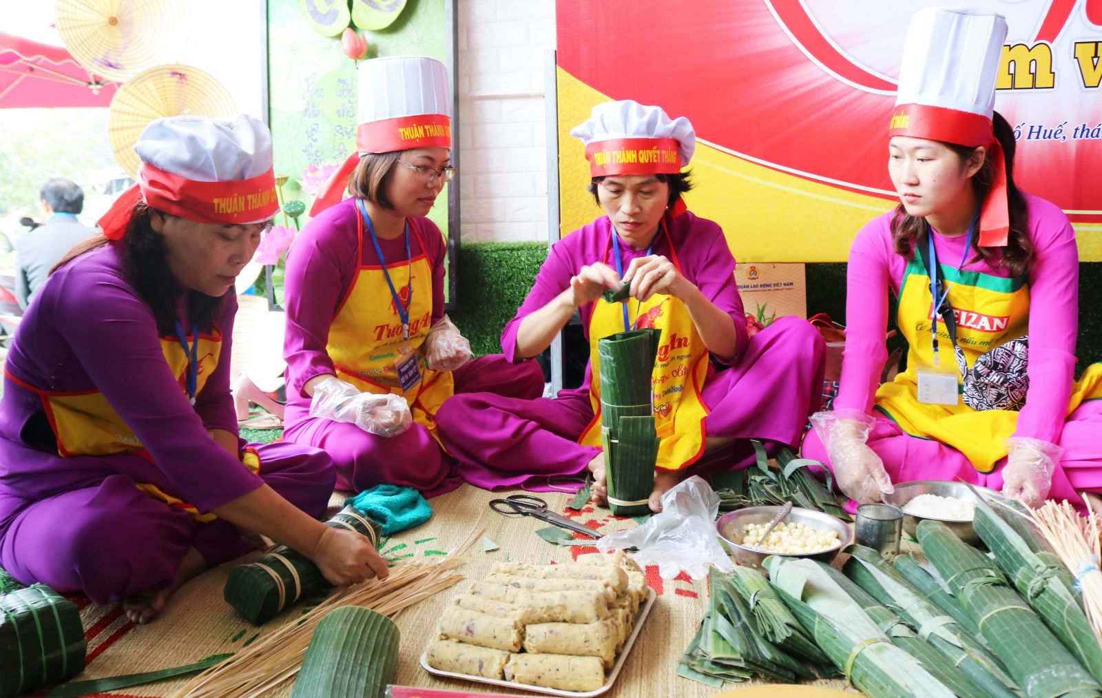 Các thí sinh tham gia tranh tài tại Hội thi nấu bánh tét