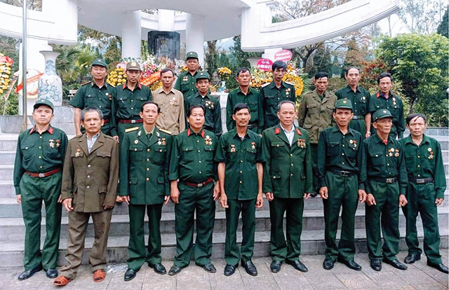 Đoàn CCB Bình Trị Thiên thăm và chụp ảnh lưu niệm tại Nghĩa trang Quốc gia Vị Xuyên, nơi yên nghỉ của gần 2000 liệt sĩ Mặt trận Vị Xuyên - Hà Tuyên, năm 2019. Ảnh: VT