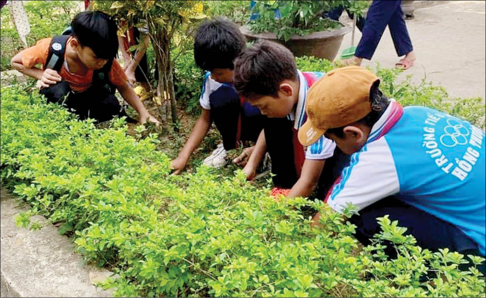 Học sinh tại A Lưới tham gia hoạt động vệ sinh môi trường, làm đẹp trường lớp