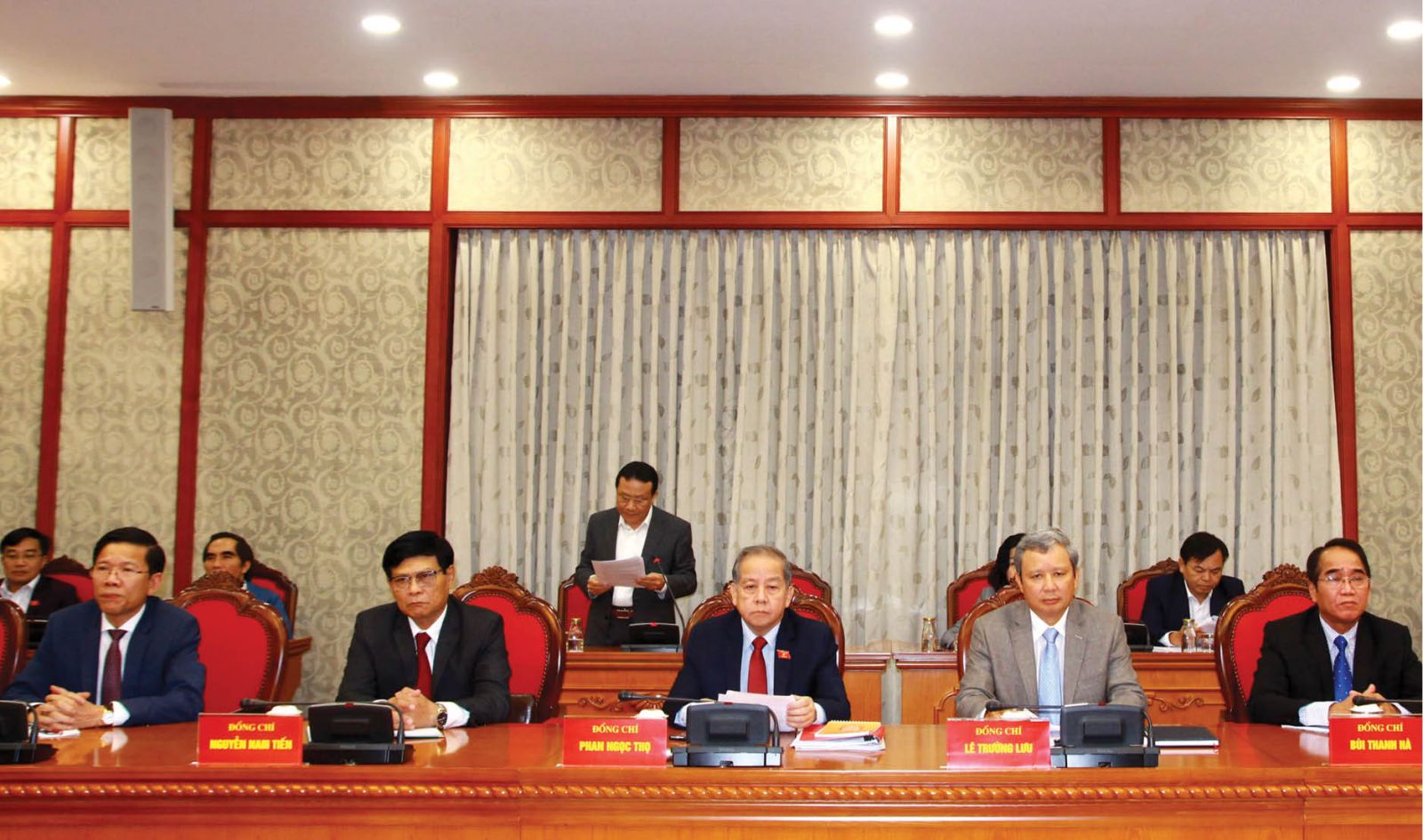 Bí thư Tỉnh ủy Lê Trường Lưu và Đoàn công tác của tỉnh làm việc với Bộ Chính trị, Ban Bí thư về Nghị quyết 54 của Bộ Chính trị. Ảnh: ANH PHONG