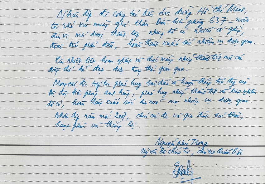 | Bút tích Tổng Bí thư khi ghé thăm Đồn Biên phòng 637 |