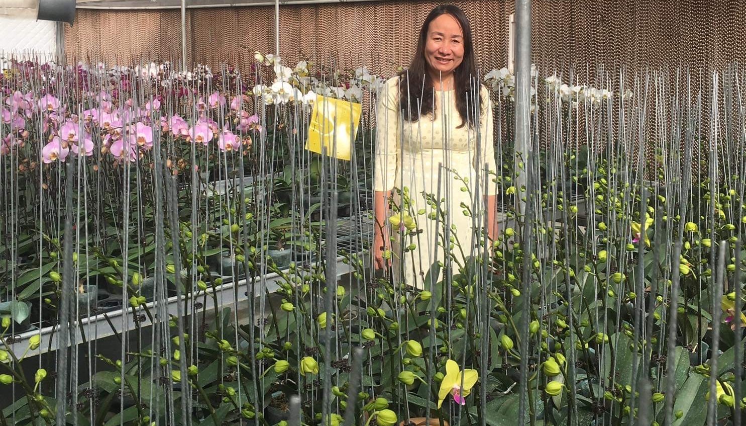 Kỹ sư Lê Thị Thúy Nga với vườn lan hồ điệp áp dụng sáng kiến công nghệ đèn Led vào sản xuất