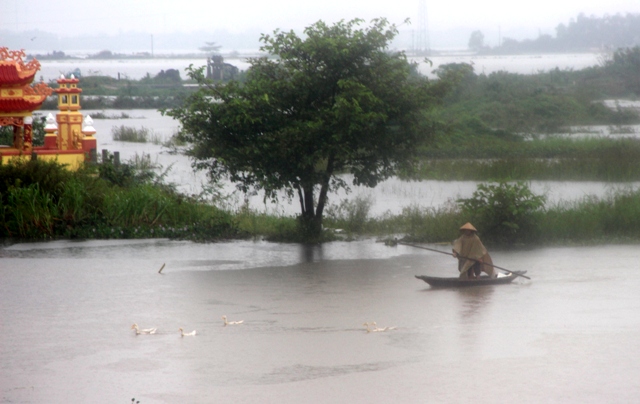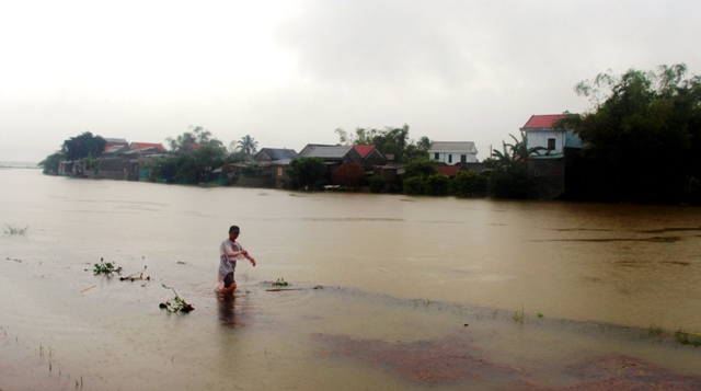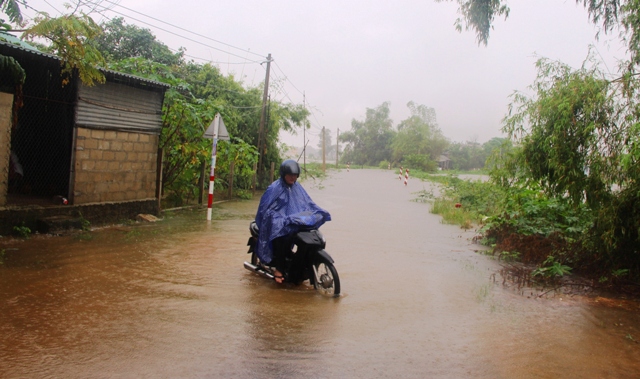 Tại đoạn đường dẫn qua cầu Thủ Lễ (xã Quảng Phước), nước từ mé sông tràn lên gây ngập úng chừng 0,5m, giao thông đoạn này bị chia cắt. Từ trong các thôn nằm dọc mép sông Diên Hồng, xã Quảng Phước nước đã mấp mé nhà dân, một số tuyến đường liên thôn thấp trũng, nước ngập từ 0,2-0,3m. Ở những nơi này, người dân tranh thủ nước lụt lên ra sông cất rớ, bắt chuột đồng nên rất nguy hiểm.