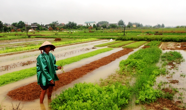 Ông Đào Trọng Thành, Chủ tịch UBND xã Quảng Thành cho biết: "Mưa lớn trong hai ngày qua đã làm mực nước sông dâng cao nhưng chỉ gây ngập nhẹ một số tuyến đường giao thông nội đồng. Toàn xã có 30 ha rau các loại, số diện tích này chủ yếu trồng trong vườn nhà ở thôn Tây Thành. Một số diện tích nhỏ còn lại (trên tổng diện tích 1,8 ha vùng rau an toàn) bị ngập trong nước".