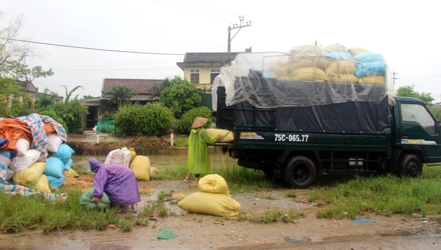 Người dân xã Quảng Thành (Quảng Điền) di chuyển lúa tránh thiệt hại