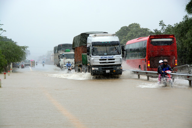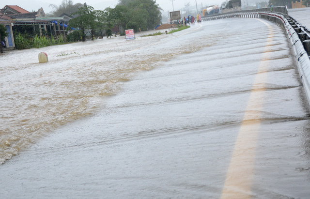 Nước bắt đầu tràn qua Quốc lộ
