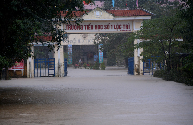 Nước dâng gây ngập Trường tiểu học số 1 Lộc Trì, học sinh phải nghỉ học