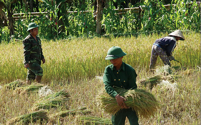 Năm nay, lúa được mùa, năng suất cao. Với khẩu hiệu “Cán bộ, chiến sĩ Đồn Biên phòng Hương Nguyên chung sức xây dựng nông thôn mới”, trong đợt vụ mùa này, Đồn Biên phòng Hương Nguyên đã huy động 60 ngày công lao động của cán bộ, chiến sĩ giúp các hộ gia đình thu hoạch gần 2ha lúa. Ông Viên Xuân Danh, Phó Chủ tịch UBND xã A Roàng chia sẻ: “Do điều kiện tự nhiên còn nhiều khó khăn, bà con chưa quen với phương thức trồng lúa nước nên hiệu quả đem lại thấp. Với sự nỗ lực vượt qua đói nghèo, lạc hậu của cấp ủy, chính quyền cùng Nhân dân địa phương, nhất là có sự chung tay, giúp sức của bộ đội biên phòng trong thời gian qua, Nhân dân trên địa bàn xã đã từng bước thành thạo với phương thức sản xuất lúa nước mà trước đây đối với họ rất đỗi xa lạ, đồng bào đã chủ động được công việc của mình, cơ bản nắm chắc các quy trình sản xuất lúa nước. Từ đó, năng suất ngày càng tăng, cuộc sống của bà con từng bước ổn định”.