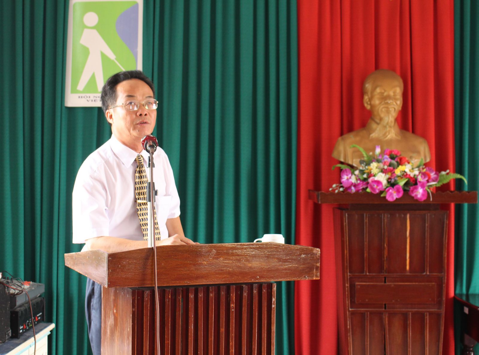Ông Lê Văn Lộc, Chủ tịch Hội Người mù tỉnh phát biểu tại lễ khai giảng khóa học