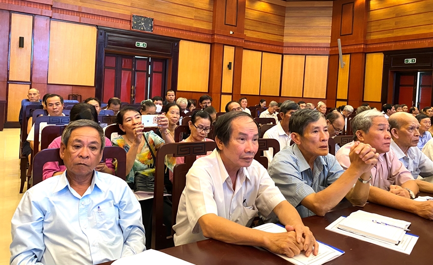 | Các Trưởng ban công tác Mặt trận lắng nghe các chuyên đề |
