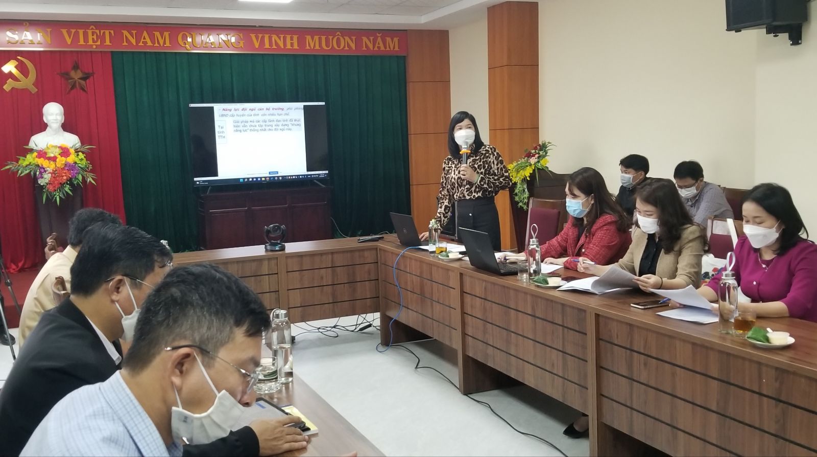 Đại diện đơn vị thực hiện đề tài nghiên cứu khoa học, TS. Lê Thị Hằng, chủ nhiệm đề tài thuyết minh về những hạn chế, tồn tại và tính cấp thiết cần nghiên cứu giải pháp nâng cao năng lực lãnh đạo, quản lý cho đội ngũ trưởng phó phòng UBND cấp huyện trên địa bàn tỉnh trong giai đoạn hiện nay, nhất là xuất phát từ yêu cầu thực hiện nhiệm vụ định hướng xây dựng tỉnh trở thành thành phố trực thuộc Trung ương vào năm 2025, tầm nhìn 2030.