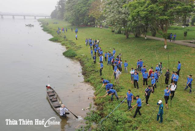 Làm sạch sông Hương - một trong những hoạt động ý nghĩa của tuổi trẻ Thừa Thiên Huế. Ảnh: Hồ Ngọc Sơn