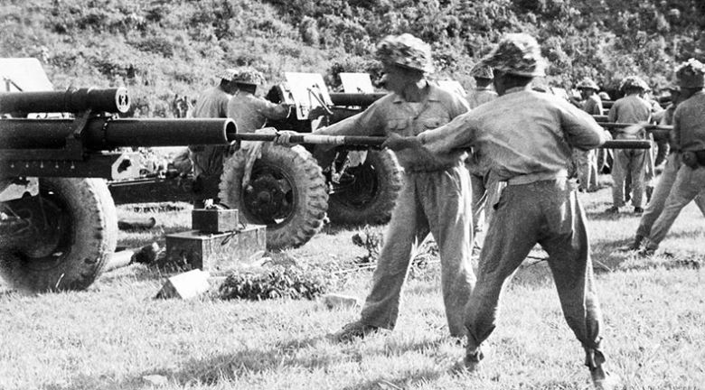 | Các chiến sĩ pháo binh của ta chuẩn bị cho giờ nổ súng tại chiến dịch Điện Biên Phủ. (Ảnh tư liệu TTXVN) |
