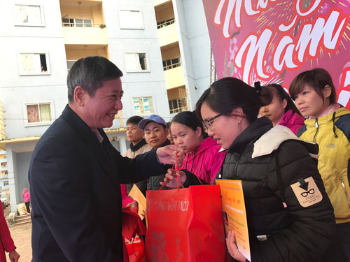 Ông Trần Thanh Hải, Phó Chủ tịch Thường trực Tổng LĐLĐ Việt Nam, trao quà Tết nguyên đán Đinh Dậu 2017 cho công nhân KCN Bắc Thăng Long (Hà Nội)