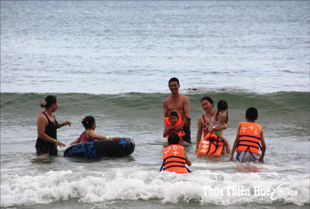 Mùa hè, lượng khách đến bãi biển Thuận An khá đông