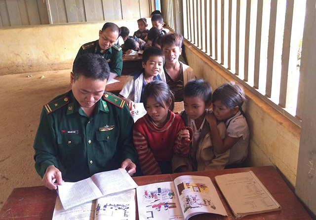 BĐBP đồn A Đớt thăm học sinh bản Ka Lô, trong đó có các cháu được các anh hỗ trợ “nâng bước em đến trường”