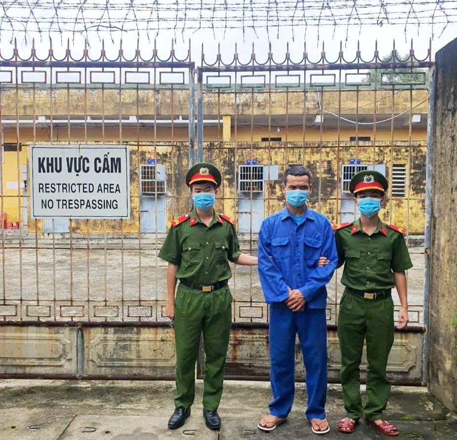 Nguyễn Văn Quý (giữa) tại nhà tạm giữ Công an TX. Hương Thủy