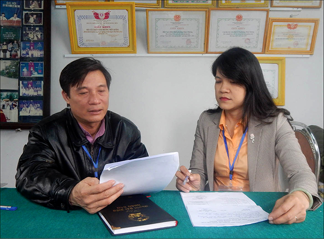 Ông Thành trao đổi nghiệp vụ với đồng nghiệp