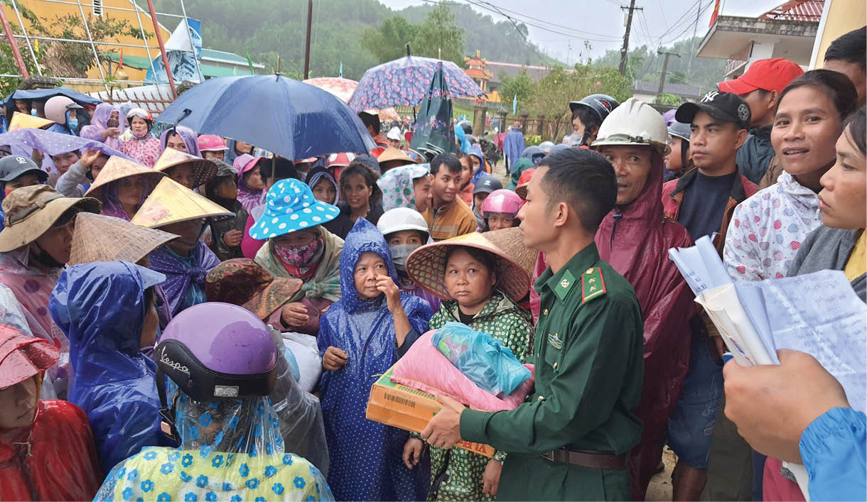 Trung úy Phạm Thái Sơn thăm, tặng quà người bị ảnh hưởng thiên tai