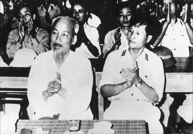 Bác Hồ và Đại tướng Nguyễn Chí Thanh dự Hội nghị Quân chính toàn quân lần thứ nhất (1960) (Ảnh: Tư liệu)