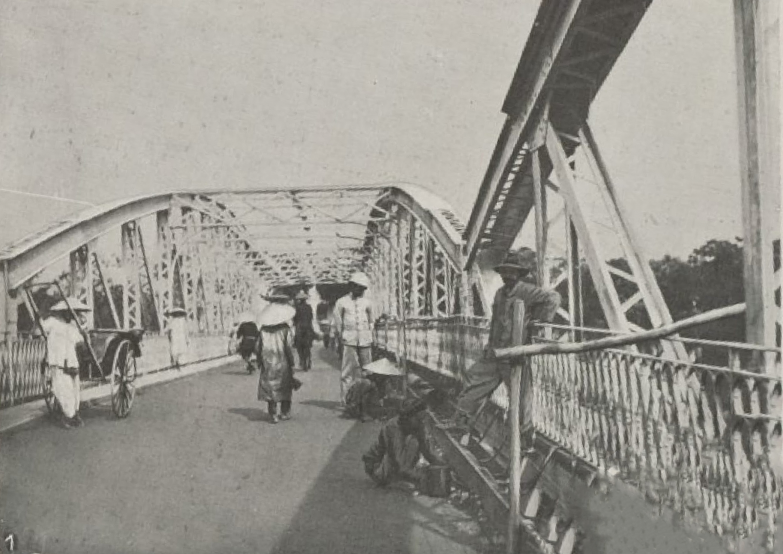 Thi công đường ống nước qua cầu Thành Thái  (La Dépêche coloniale illustrée,1911)