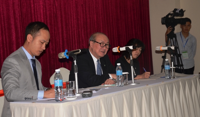 Ngài Hatsuhisa Takashima (giữa) trả lời các câu hỏi từ báo giới