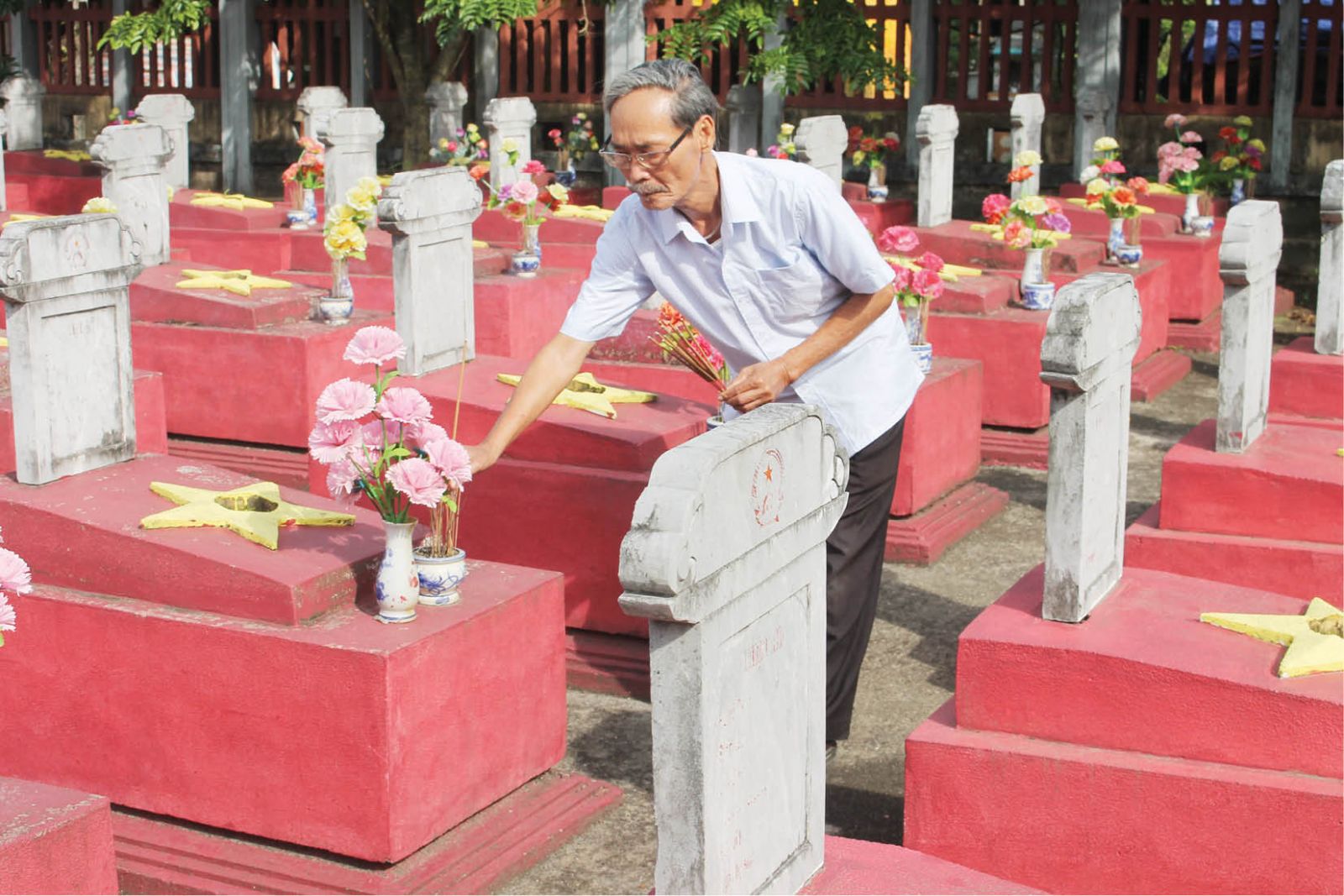 Dâng hương tưởng nhớ đồng đội ở Nghĩa trang Lộc Bổn