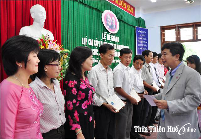 Nhiều học viên của trường đã phát huy được năng lực, trí tuệ, trở thành cán bộ cốt cán ở cơ sở. Trong ảnh: Trao chứng chỉ hoàn thành lớp cao cấp chính trị cho các học viên (ảnh tư liệu)