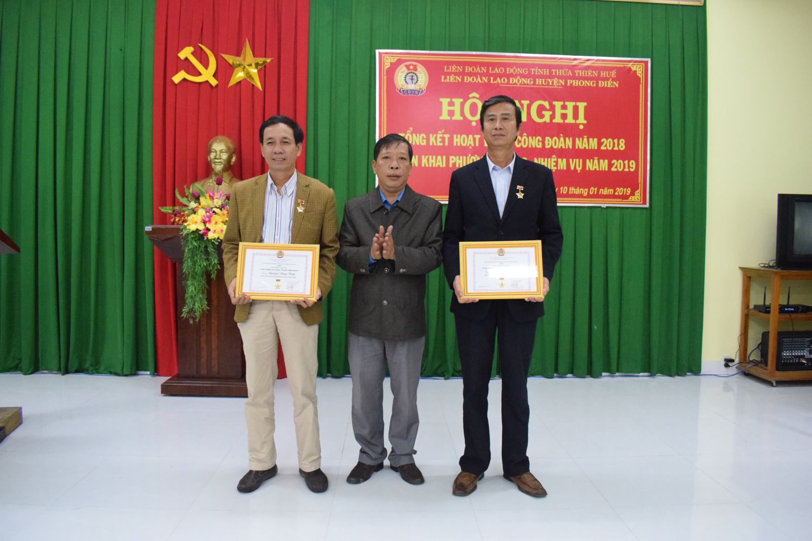 Dịp này, Tổng LĐLĐ Việt Nam đã tặng kỷ niệm chương “ Vì sự nghiệp xây dựng tổ chức Công đoàn” cho 2 cá nhân. LĐLĐ tỉnh, LĐLĐ huyện Phong Điền đã tặng bằng khen, giấy khen cho những tập thể, cá nhân có thành tích xuất sắc, đóng góp cho hoạt động công đoàn năm 2018.