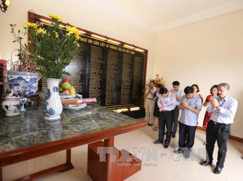 Ông Nguyễn Đức Lợi, Ủy viên Trung ương Đảng, Tổng giám đốc TTXVN cùng các đại biểu thắp hương tưởng niệm các anh hùng nhà báo- liệt sĩ của TTXVN. Ảnh: Vũ Sinh/TTXVN