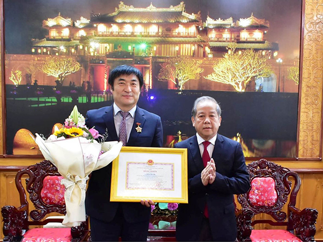 Dịp này, ông cũng chào xã giao lãnh đạo tỉnh và khẳng định dù ở cương vị nào cũng sẽ thúc đẩy sự hợp tác, phát triển, nỗ lực giúp đỡ Thừa Thiên Huế nói chung, và TP. Huế nói riêng. Với những đóng góp to lớn ấy, ông được UBND tỉnh Thừa Thiên Huế trao tặng bằng khen và huy hiệu “Người tốt, việc tốt”.