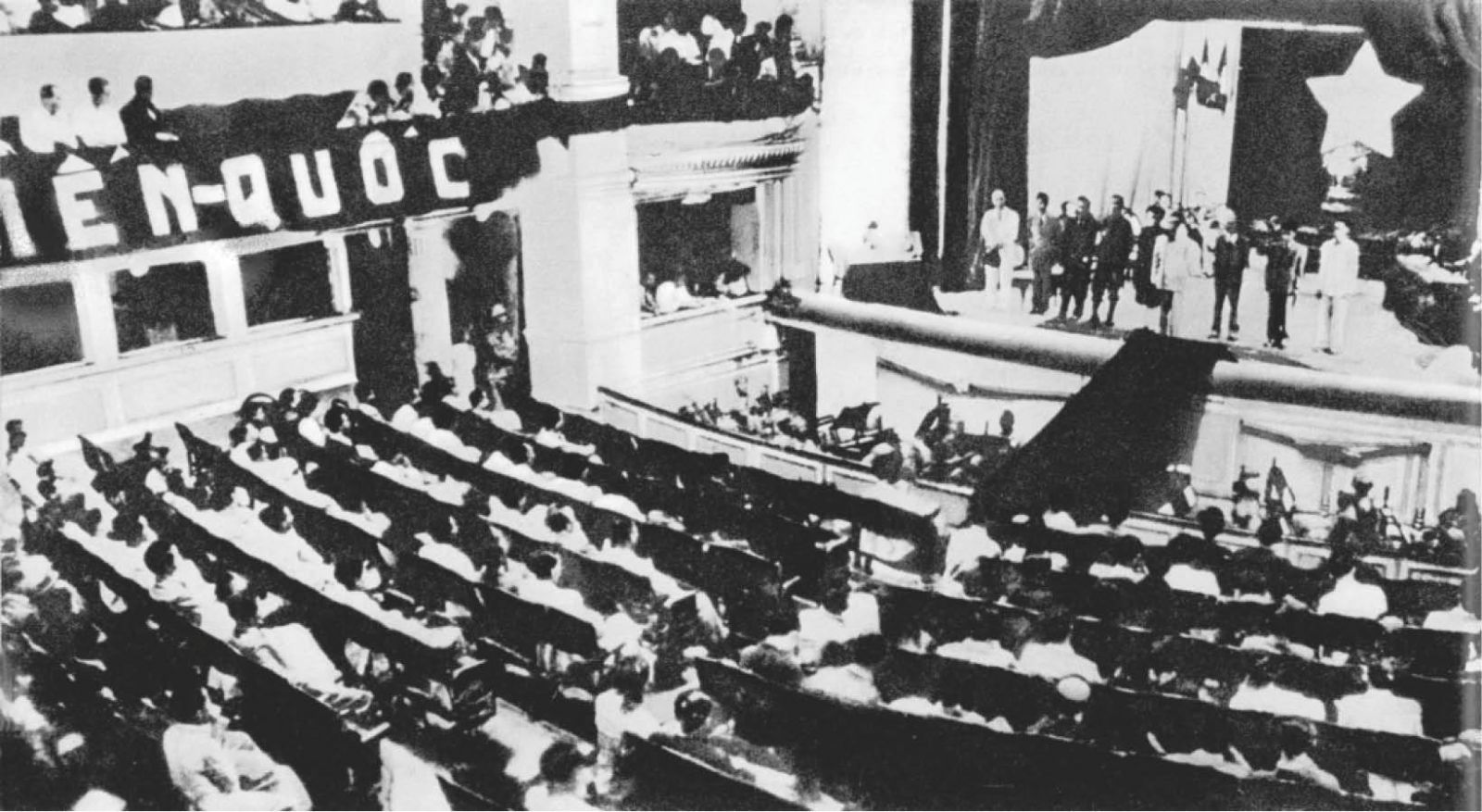 Kỳ họp thứ nhất, Quốc hội khóa I – Quốc hội đầu tiên của nước Việt Nam Dân chủ Cộng hòa sau Tổng tuyển cử ngày 6/1/1946, tại Nhà hát lớn Hà Nội. Ảnh: nhandan.com.vn