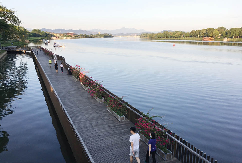 Tôi thả xe chầm chậm dọc bờ nam sông Hương, dẫu vẫn còn đôi chỗ hơi bừa bộn do công trình đài phun nước trước UBND tỉnh, một vài đoạn hè phố đang xây dựng dở,… nhưng đã có thể thấy cả không gian khoáng đạt, gần gũi và nên thơ đang hiện hữu trước mắt. Một con đường Lê Lợi thơ mộng, một hệ thống công viên, một tuyến phố đi bộ, một con sông xanh ngắt, huyền thoại như hòa quyện, như gắn kết đẹp đến nao lòng mà tôi chưa gặp ở bất cứ nơi nào mình đã đi qua. Không gian ấy rồi sẽ còn mở rộng, mải miết lên tận Nguyệt Biều, Long Thọ. Đối xứng ở phía bờ bắc, một không gian còn tuyệt vời hơn trải dài từ miệt Chi Lăng, qua Đông Ba, Trường Tiền lên tới Thiên Mụ. Nói tuyệt vời hơn bởi bên ấy, cái không gian gần gũi khoáng đạt còn gắn quyện với công viên Phu Văn Lâu, với Kỳ đài Huế, với thiêng liêng diệu vợi của thành quách rêu phong đã đóng dấu ấn vào danh mục di sản loài người…