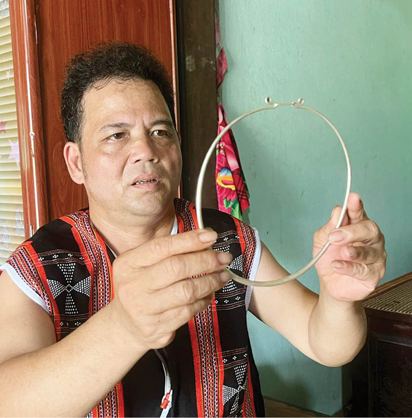 Chiếc vòng đeo cổ bằng bạc đang được nghệ nhân cồng chiêng Phạm Văn Kình - con trai thứ của ông Quỳnh Tếu cất giữ