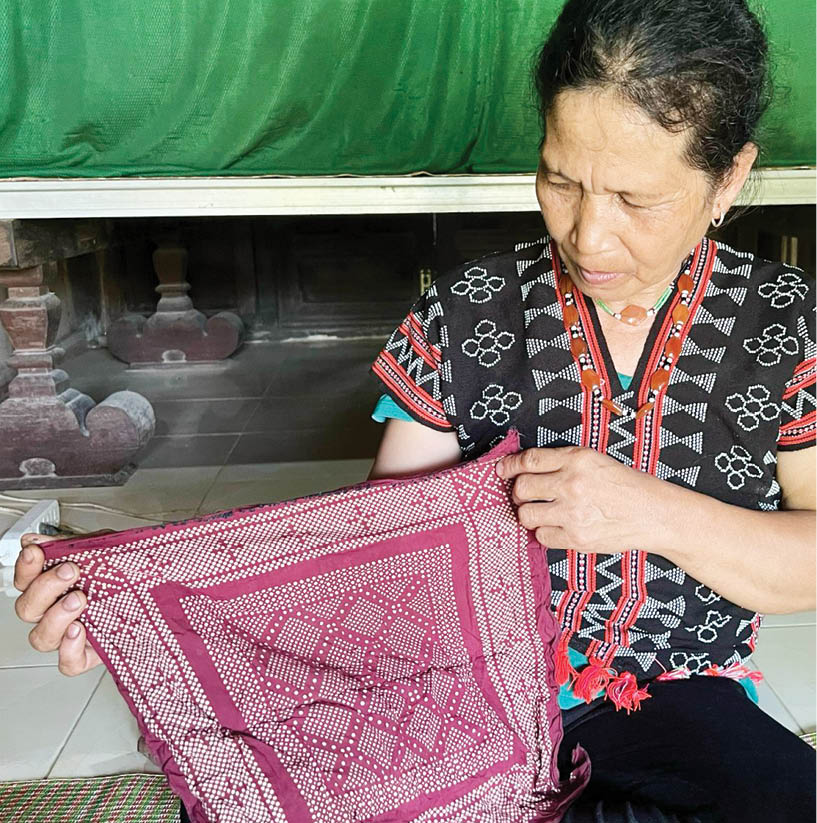 Chiếc khăn tay còn lại đang được bà Phạm Thị Thong - con gái ông Quỳnh Tếu giữ gìn