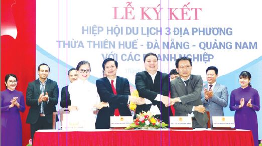 Chị Nguyễn Hoàng Thụy Vy, Giám đốc Điều hành Khách sạn Mường Thanh Huế ký kết hợp tác với các đối tác trong kinh doanh