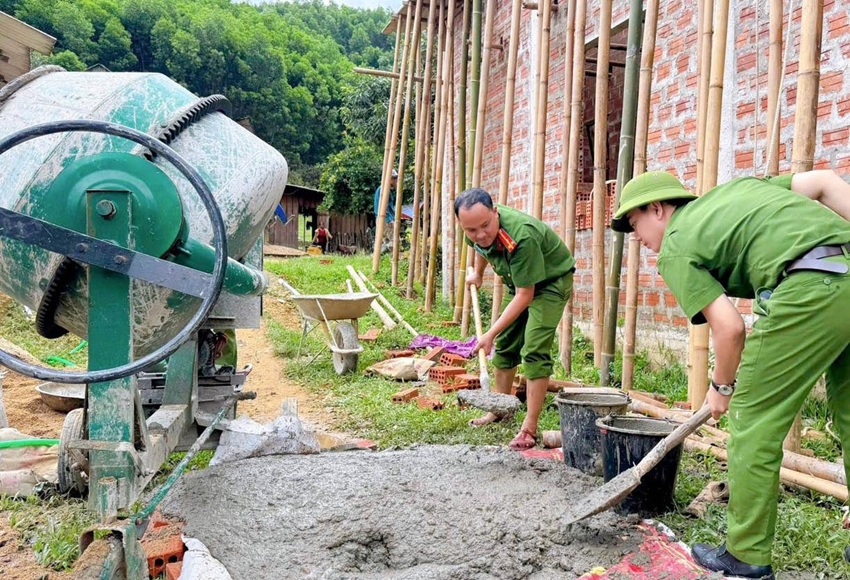 Cũng trong thời gian này, cán bộ Công an xã A Lưới 2 cùng với đoàn viên, thanh niên thuộc Ban Thanh niên Công an TP. Huế đã chạy đua với thời gian, hỗ trợ giúp vợ chồng anh A Viết Bai (SN 1994, hộ nghèo ở thôn Âr Bả Nhâm, xã A Lưới 2) xây dựng căn nhà mới để kịp hoàn thiện, khánh thành vào trước dịp 19/8 này. Do địa điểm xây nhà của anh Bai nằm ở vùng đồi núi, đường sá đi lại khó khăn nên các lực lượng phải dùng sức chở từng viên bờ lô, gạch ngói, từng bao xi măng vận chuyển đến điểm tập kết để xây nhà.