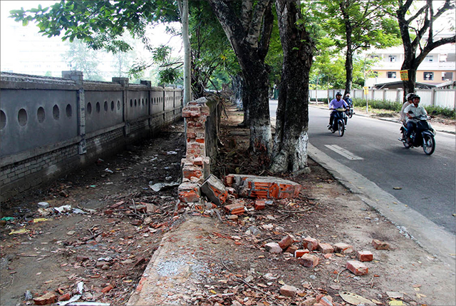 “Nếu xây tường thành mới ở vị trí cũ lỡ sau này việc quy hoạch mở đường diễn ra buộc phải đập bỏ, di dời vào trong thêm một lần nữa sẽ rất tốn kém. Do vậy, trường đã quyết định xây lùi vào trước, nhường đất để thành phố mở rộng đường, vỉa hè”, thầy Đức nói. Bức tường thành mới được lùi vào sâu bên trong vốn là đất thuộc sân bóng nằm trong khuôn viên trường, dù mất đi một hàng cây xanh dọc theo. Bức tường thành mới cũng được xây dựng đảm bảo kiến trúc như trước, hài hòa tổng thể của trường.