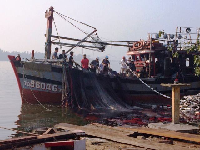 Các thuyền viết đang kiểm tra lại ngư lưới cụ