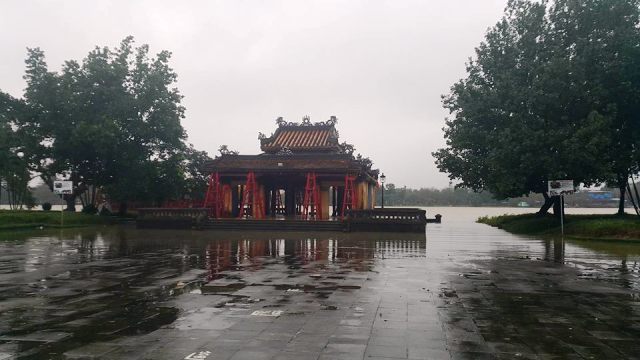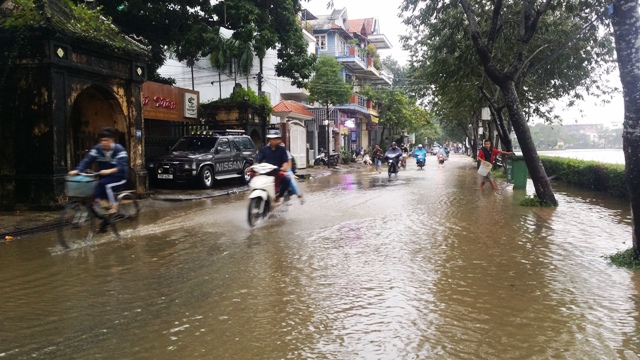 Nước vào tận Phu Vân Lâu. Ảnh: Đ.Từ