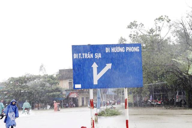 Đường qua xã Hương Vinh về thị trấn Sịa và xã Hương Phong ngập nặng. Ảnh: Ngọc Thắng
