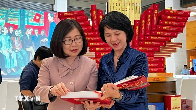 | Cuốn sách ảnh song ngữ Việt-Anh “80 năm Quốc hội Việt Nam (1946-2026)" do Nhà xuất bản Thông tấn phối hợp với Vụ Thông tin và Thư viện thuộc Văn phòng Quốc hội tổ chức biên soạn, xuất bản. (Ảnh: TTXVN) |