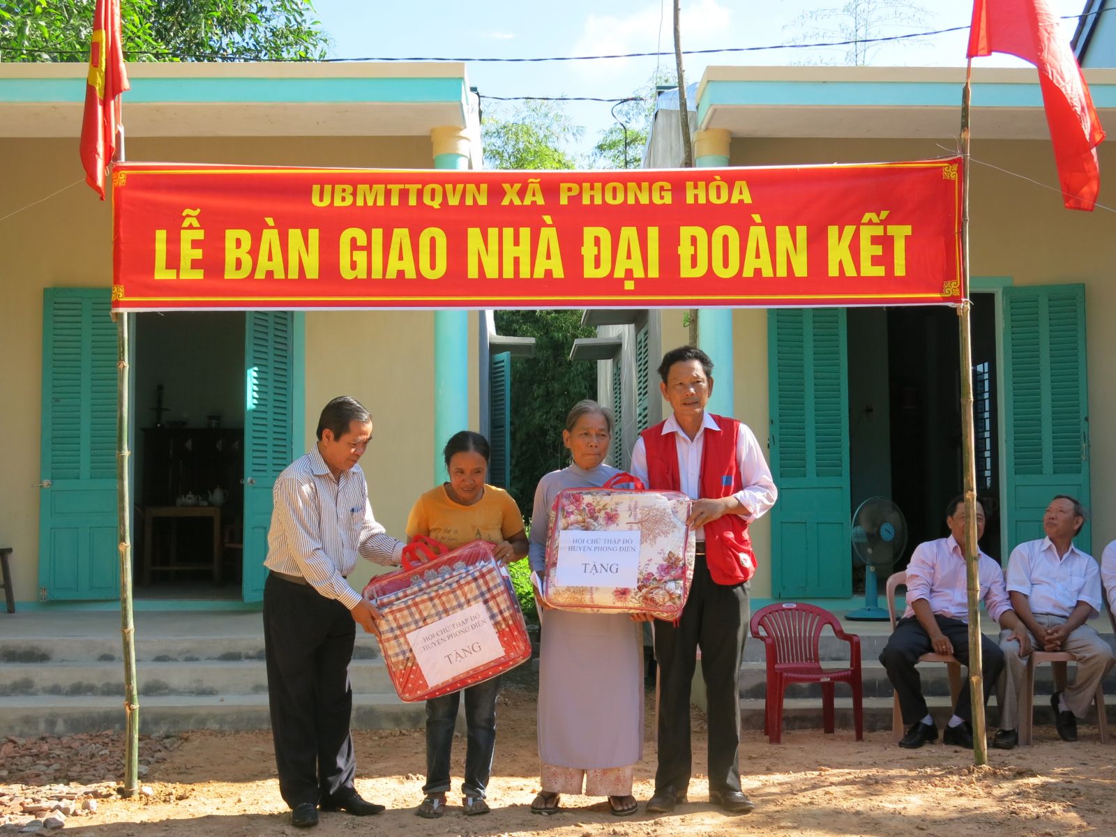 UBMTTQVN và Hội chữ thập đỏ huyện Phong Điền tặng quà cho hộ nghèo tại lễ bàn giao nhà đại đoàn kết tại xã Phong Hòa