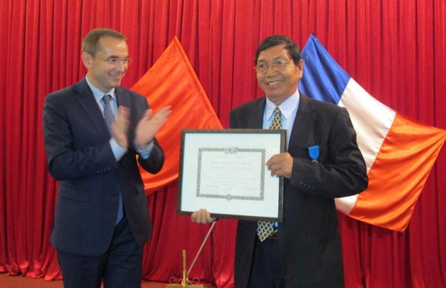 Ông Nguyễn Văn Mễ và dịch giả Bửu Ý nhận Huân chương của Cộng hòa Pháp