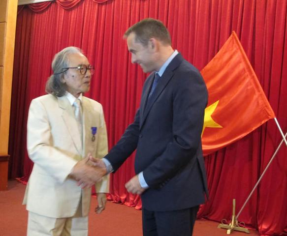 Ông Jean-Noël Poirier, Đại sứ Pháp tại Việt Nam trao Huân chương Quốc công cho ông Nguyễn Văn Mễ